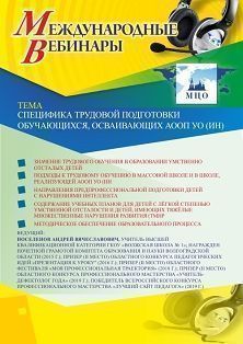 Международный вебинар «Специфика трудовой подготовки обучающихся, осваивающих АООП УО (ИН)»
