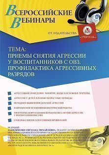 Вебинар «Приемы снятия агрессии у воспитанников с ОВЗ. Профилактика агрессивных разрядов»