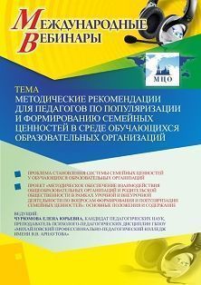 Международный вебинар «Методические рекомендации для педагогов по популяризации и формированию семейных ценностей в среде обучающихся образовательных организаций»