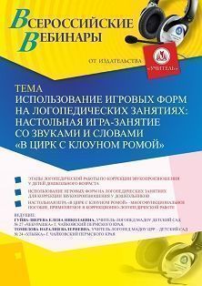 Вебинар «Использование игровых форм на логопедических занятиях: настольная игра-занятие со звуками и словами "В цирк с клоуном Ромой"»