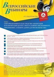 Вебинар «Сенсорная комната как средство абилитации и реабилитации детей с ОВЗ в условиях инклюзивного образования: "Спешите дарить детям волшебство"»