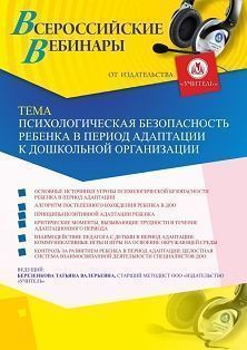 Вебинар «Психологическая безопасность ребенка в период адаптации к дошкольной организации»