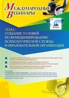 Международный вебинар "Создание условий по функционированию психологической службы в образовательной организации"
