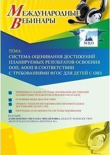 Международный вебинар "Система оценивания достижений планируемых результатов освоения ООП, АООП в соответствии с требованиями ФГОС для детей с ОВЗ"