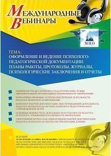 Международный вебинар "Оформление и ведение психолого-педагогической документации: планы работы, протоколы, журналы, психологические заключения и отчеты"