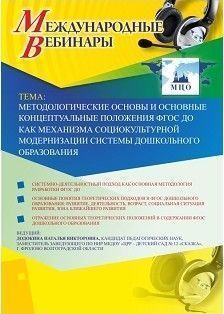 Международный вебинар "Методологические основы и основные концептуальные положения ФГОС ДО как механизма социокультурной модернизации системы дошкольного образования"