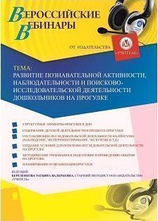 Вебинар "Развитие познавательной активности, наблюдательности и поисково-исследовательской деятельности дошкольников на прогулке"