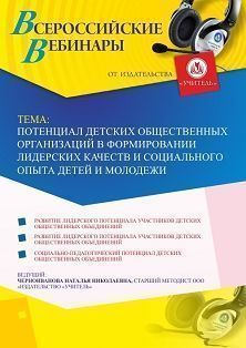 Приглашаем классных руководителей, педагогов-организаторов, заместителей руководителя, педагогов дополнительного образования принять участие в offline-вебинаре «Потенциал детских общественных организаций в формировании лидерских качеств и социального опыта детей и молодежи».