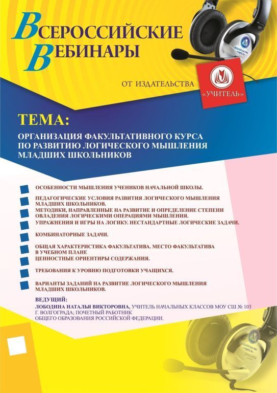 Приглашаем учителей начальных классов принять участие в offline-вебинаре «Организация факультативного курса по развитию логического мышления младших школьников».