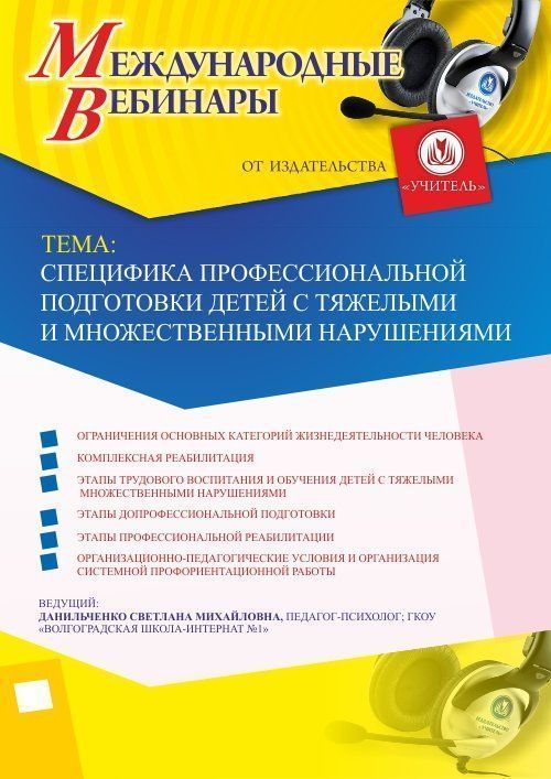 Приглашаем психологов, педагогов инклюзивного образования, логопедов, дефектологов принять участие в offline-вебинаре «Специфика профессиональной подготовки детей с тяжелыми и множественными нарушениями».