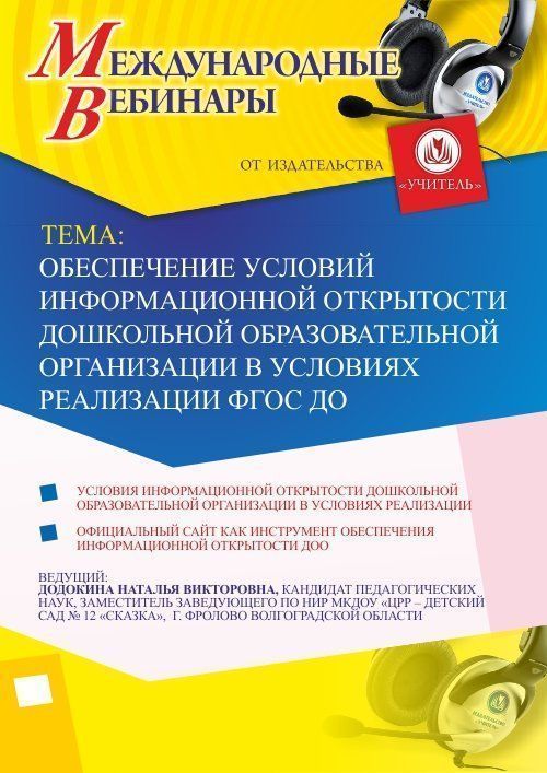 Приглашаем директоров, руководителей, заведующих, заместителей руководителя принять участие в offline-вебинаре «Обеспечение условий информационной открытости дошкольной образовательной организации в условиях реализации ФГОС ДО».