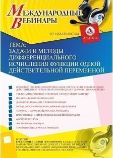 Приглашаем учителей-предметников принять участие в offline-вебинаре «Задачи и методы дифференциального исчисления функции одной действительной переменной».