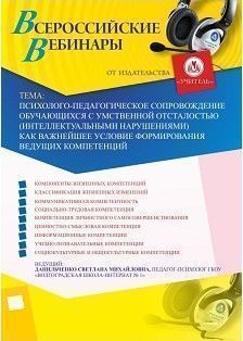 Вебинар "Психолого-педагогическое сопровождение обучающихся с умственной отсталостью (интеллектуальными нарушениями) как важнейшее условие формирования ведущих компетенций"