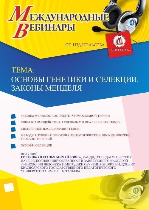 Приглашаем учителей-предметников, методистов принять участие в offline-вебинаре «Основы генетики и селекции. Законы Менделя».