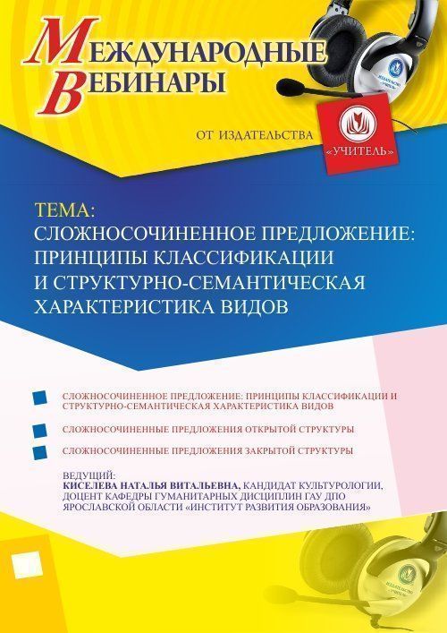 Приглашаем учителей-предметников, методистов принять участие в offline-вебинаре «Сложносочиненное предложение: принципы классификации и структурно-семантическая характеристика видов».