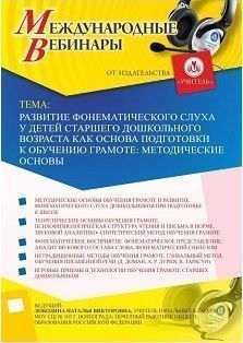 Международный вебинар "Развитие фонематического слуха у детей старшего дошкольного возраста как основа подготовки к обучению грамоте: методические основы"