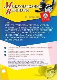 Международный вебинар "Защита от поражающих факторов источников чрезвычайных ситуаций, характерных для мест расположения и производственной деятельности организации, а также оружия массового поражения и других видов оружия"