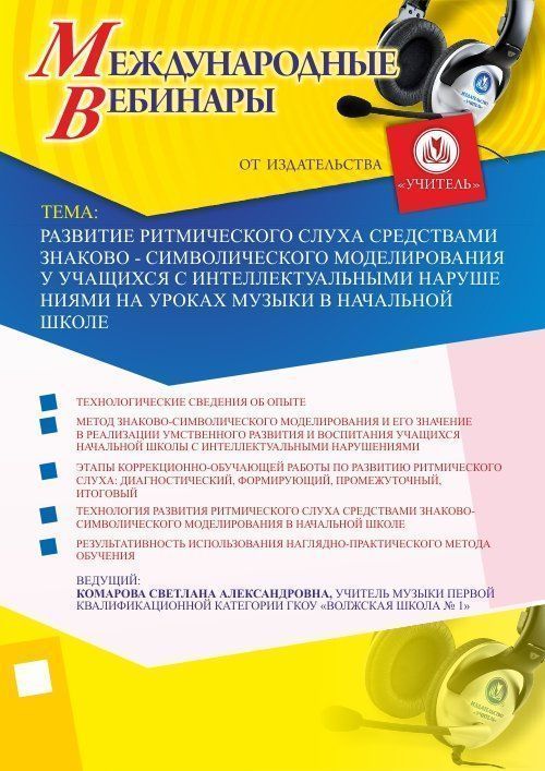 Международный вебинар "Развитие ритмического слуха средствами знаково-символического моделирования у учащихся с интеллектуальными нарушениями на уроках музыки в начальной школе"