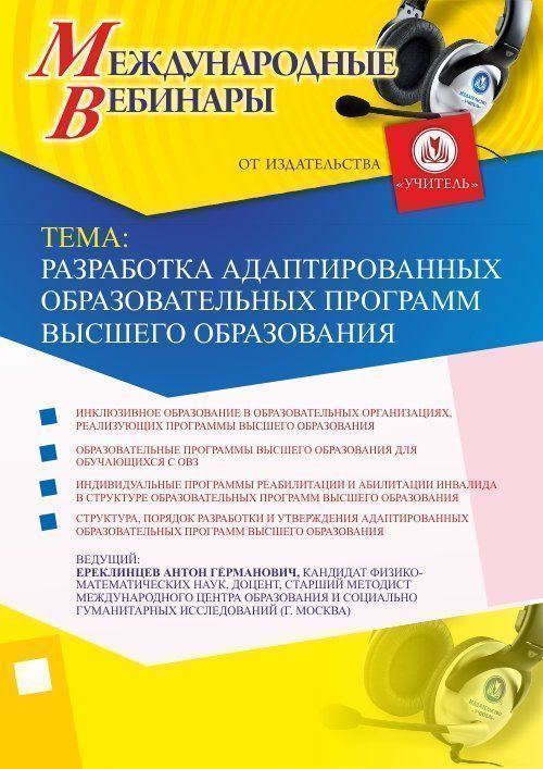 Приглашаем директоров, руководителей, заведующих, заместителей руководителя, преподавателей принять участие в offline-вебинаре «Разработка адаптированных образовательных программ высшего образования».