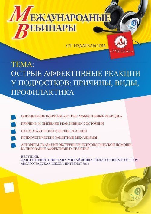 Приглашаем социальных педагогов, психологов, воспитателей, заместителей руководителя, методистов принять участие в offline-вебинаре «Острые аффективные реакции у подростков: причины, виды, профилактика».
