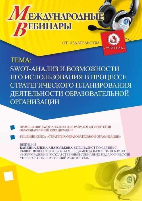 Приглашаем директоров, руководителей, заведующих, заместителей руководителя, методистов принять участие в offline-вебинаре «SWOT-анализ и возможности его использования в процессе стратегического планирования деятельности образовательной организации».