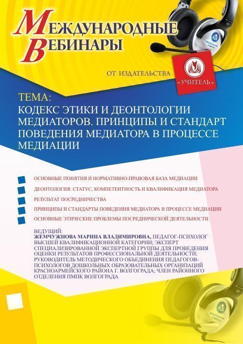 Приглашаем медиаторов, психологов принять участие в offline-вебинаре «Кодекс этики и деонтологии медиаторов. Принципы и стандарты поведения медиатора в процессе медиации».