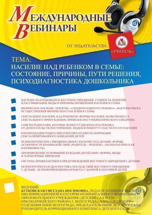 Приглашаем воспитателей, психологов, методистов, классных руководителей, социальных педагогов принять участие в offline-вебинаре «Насилие над ребенком в семье: состояние, причины, пути решения, психодиагностика дошкольника».