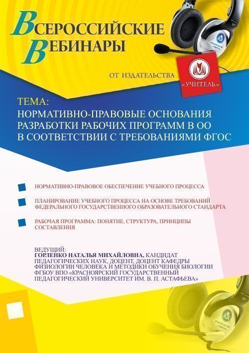 Приглашаем руководителей, учителей, методистов принять участие в offline-вебинаре «Нормативно-правовые основания разработки рабочих программ в ОО в соответствии с требованиями ФГОС».