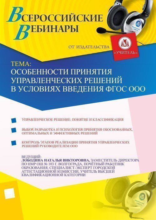 Приглашаем руководителей, методистов принять участие в offline-вебинаре «Особенности принятия управленческих решений в условиях введения ФГОС ООО».