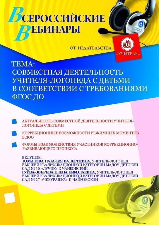 Приглашаем учителей-логопедов, воспитателей ДОО принять участие в offline-вебинаре «Совместная деятельность учителя-логопеда с детьми в соответствии с требованиями ФГОС ДО».