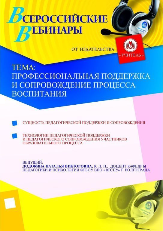 Приглашаем воспитателей, старших воспитателей, методистов, педагогов дополнительного образования, руководителей ДОО принять участие в offline-вебинаре «Профессиональная поддержка и сопровождение процесса воспитания».