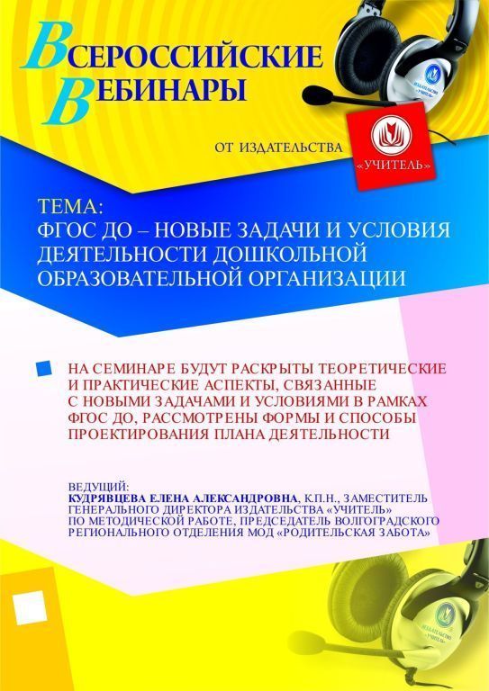 Приглашаем руководителей ДОО, заместителей по воспитательной и методической работе, старших воспитателей, специалистов ДОО принять участие в offline-семинаре «ФГОС ДО – новые задачи и условия деятельности дошкольной образовательной организации».