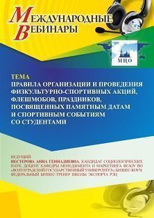 Международный вебинар «Правила организации и проведения физкультурно-спортивных акций, флешмобов, праздников, посвященных памятным датам и спортивным событиям со студентами»