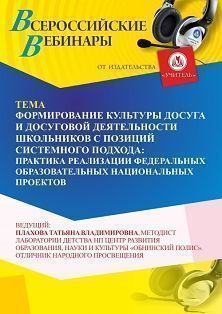 Вебинар «Формирование культуры досуга и досуговой деятельности школьников с позиций системного подхода: практика реализации федеральных образовательных национальных проектов»