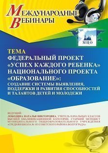 Международный вебинар «Федеральный проект «Успех каждого ребенка» национального проекта «Образование»: создание системы выявления, поддержки и развития способностей и талантов детей и молодежи»