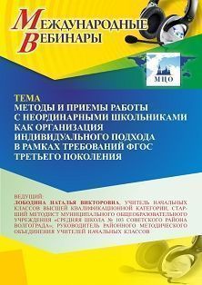 Международный вебинар «Методы и приемы работы с неординарными школьниками как организация индивидуального подхода в рамках требований ФГОС третьего поколения»
