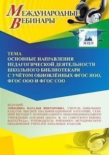 Международный вебинар «Основные направления педагогической деятельности школьного библиотекаря с учётом обновлённых ФГОС НОО, ФГОС ООО и ФГОС СОО»