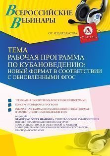 Вебинар «Рабочая программа по кубановедению: новый формат в соответствии с обновлёнными ФГОС»