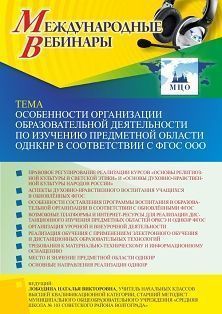 Международный вебинар «Особенности организации образовательной деятельности по изучению предметной области ОДНКНР в соответствии с ФГОС ООО»