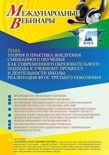 Международный вебинар «Теория и практика внедрения смешанного обучения как современного образовательного подхода к учебному процессу и деятельности школы: реализация ФГОС третьего поколения»