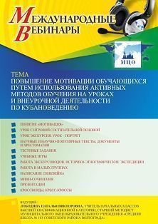 Международный вебинар «Повышение мотивации обучающихся путем использования активных методов обучения на уроках и внеурочной деятельности по кубановедению»
