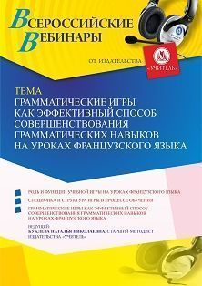 Вебинар «Грамматические игры как эффективный способ совершенствования грамматических навыков на уроках французского языка»