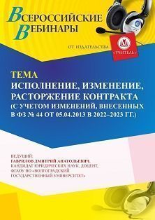 Вебинар «Исполнение, изменение, расторжение контракта (с учетом изменений, внесенных в ФЗ № 44 от 05.04.2013 в 2022 - 2023 г.г.)»