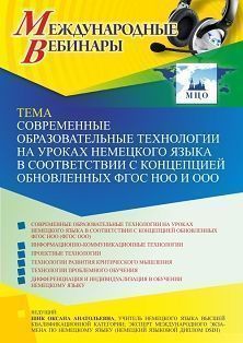 Международный вебинар «Современные образовательные технологии на уроках немецкого языка в соответствии с концепцией обновленных ФГОС НОО и ООО»