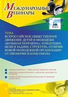 Международный вебинар «Всероссийское общественное движение детей и молодёжи “Большая перемена”: концепция, цели и задачи, структура, отличие новой молодежной организации от пионерии и комсомола»