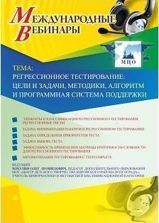 Международный вебинар "Регрессионное тестирование: цели и задачи, методики, алгоритм и программная система поддержки"