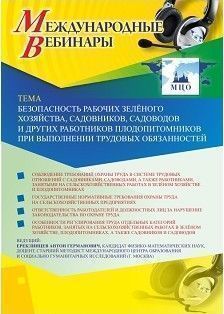 Международный вебинар "Безопасность рабочих зелёного хозяйства, садовников, садоводов и других работников плодопитомников при выполнении трудовых обязанностей"