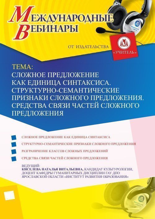 Международный вебинар "Сложное предложение как единица синтаксиса. Структурно-семантические признаки сложного предложения. Средства связи частей сложного предложения"
