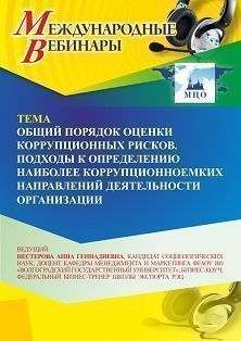 Международный вебинар «Общий порядок оценки коррупционных рисков. Подходы к определению наиболее коррупционноемких направлений деятельности организации»
