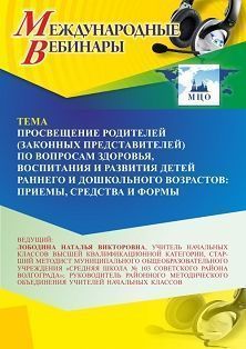 Международный вебинар «Просвещение родителей (законных представителей) по вопросам здоровья, воспитания и развития детей раннего и дошкольного возрастов: приемы, средства и формы»